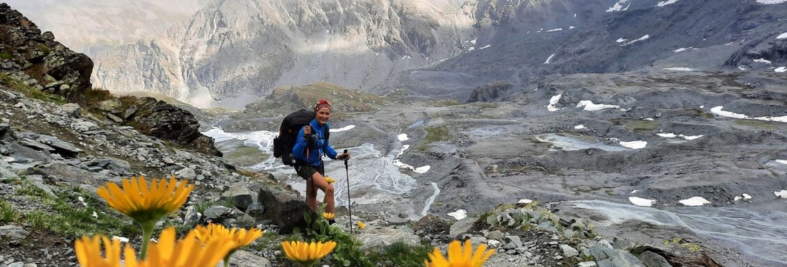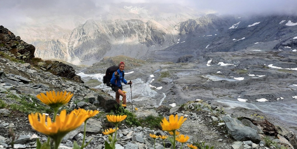 Úvodné kilometre sú krásne, na vrstevnici míňame malebnú chatu Les Grands. Otvárajú sa nám prvé výhľady na ľadovce a okolo cesty sa začínajú objavovať prvé kríky chutných čučoriedok. Potom zostupujeme k chate Chalet du Glacier (1550 m). Cestou stretávame skupinu značkárov pre jednu z trás UTMB. Pri chate si urobíme krátku prestávku na občerstvenie, pretože nás čaká dlhé a náročné stúpanie do sedla Fenêtre d'Arpette (2665 m). Výstup je náročný najmä preto, že naše batohy sú ešte plné zásob potravín na niekoľko dní. Zostup zo sedla je dosť technický, chvíľu preskakujeme veľké balvany a len zisťujeme, kadiaľ vedie cesta. Neskôr prechádzame na pohodovú turistickú trasu a zostupujeme nekonečnou naklonenou rovinou k jazeru Champex (1500 m).